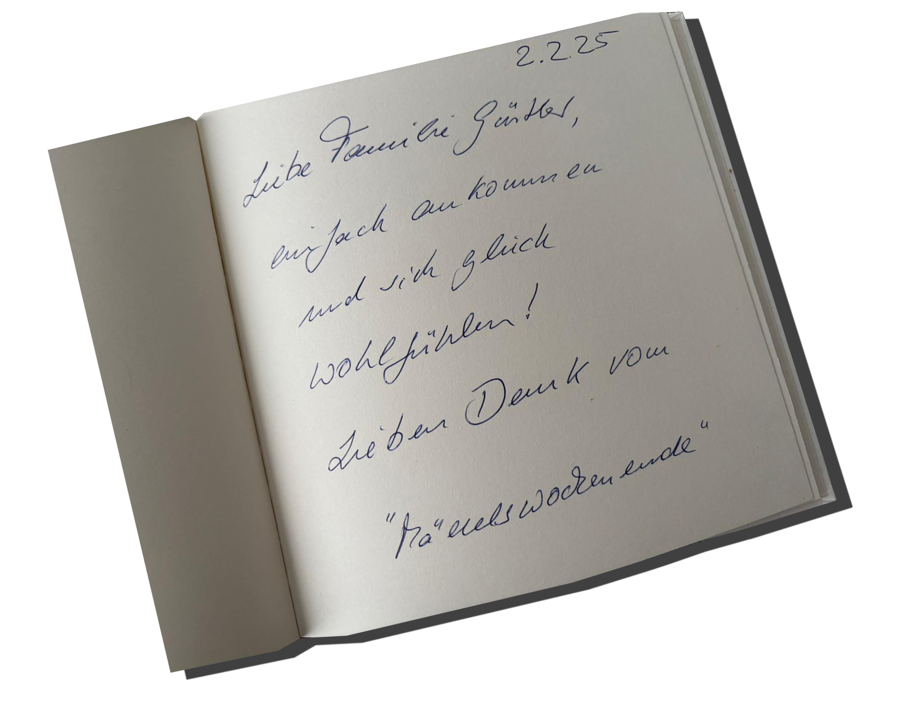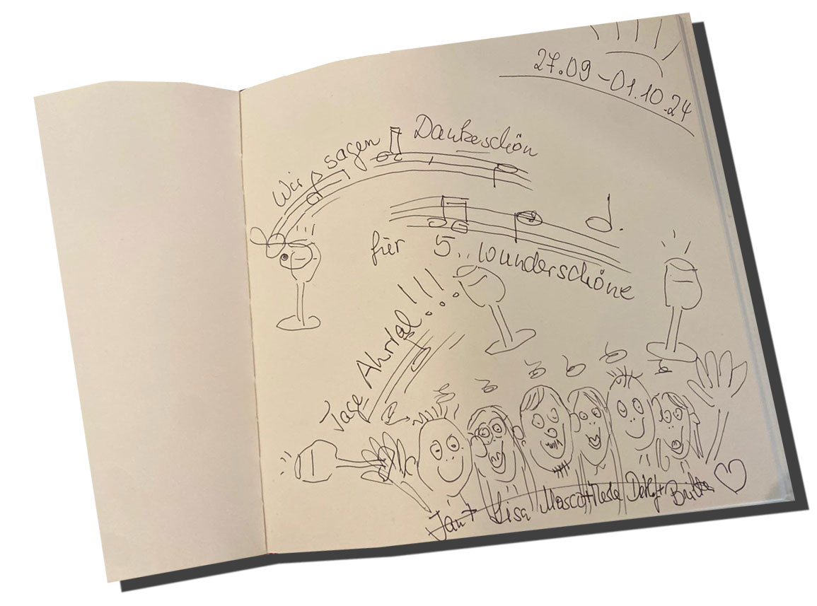 ”..Wir haben uns sehr wohl gefühlt bei Ihnen. Es hat an nichts gemangelt, alles mit Liebe eingerichet und durchdacht…” (Dr. I. Hornke, April 2019)